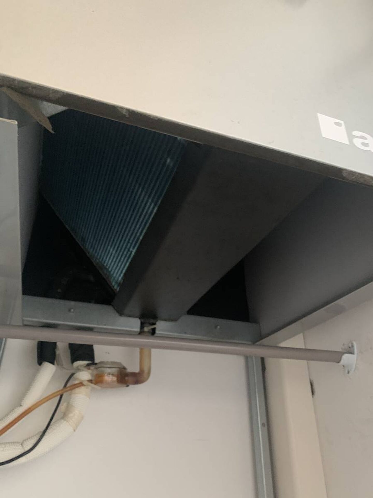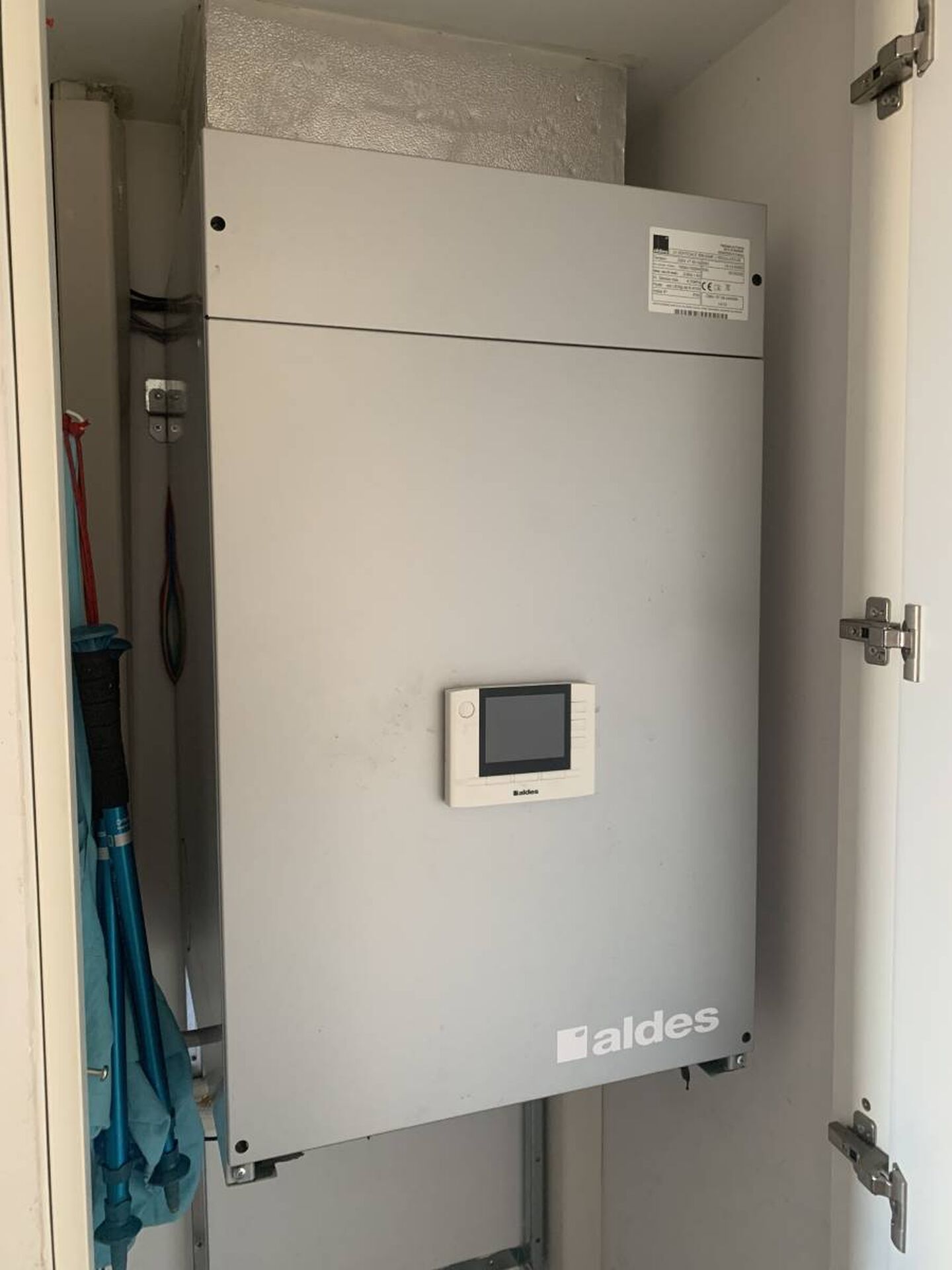 PROXICLIM a effectué l'entretien sur cette machine exceptionnel puisque la marque Aldes propose des climatisations réversibles qui ont la forme d'une chaudière notamment la T-ONE. Par conséquent elle s'installe dans un placard ce qui rend hyper accessible l'unité intérieure. Le fonctionnement est similaire à un gainable.